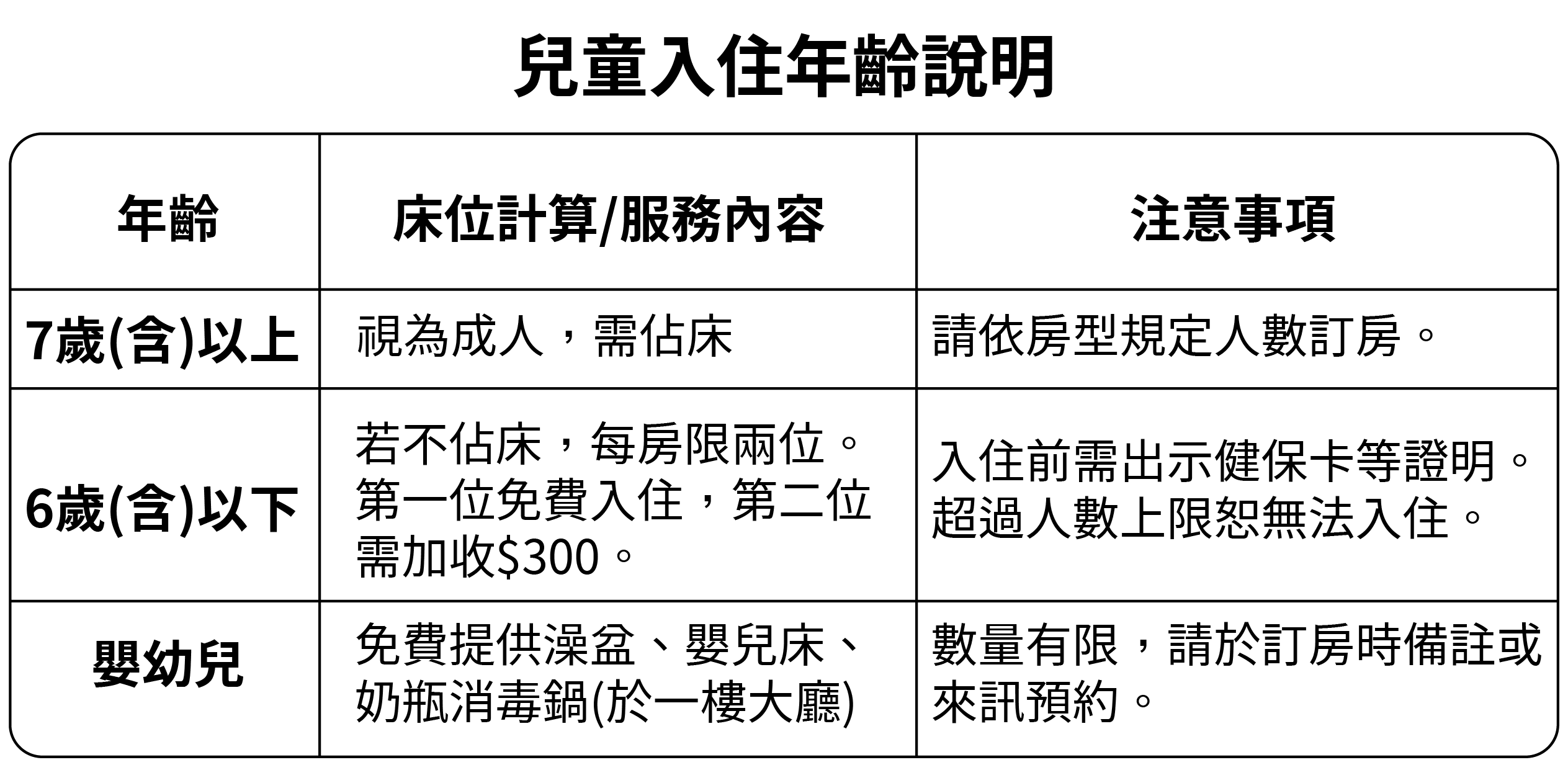 - 12歲(含)以下兒童入住,請務必詳閱下方【兒童入住指南】。